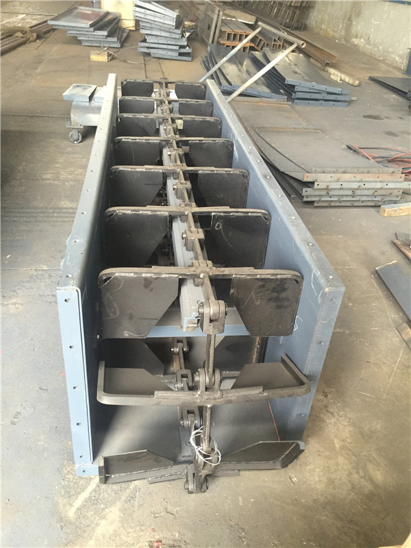 6、埋刮板輸送機(jī)進(jìn)料方式采用兩側(cè)大尺寸通過分流進(jìn)入,使回程鏈條及刮板與進(jìn)料隔離,并以不變的大尺寸料層厚度向前輸送。使鏈條及刮板回帶物料的現(xiàn)象不再發(fā)生。借助于運(yùn)動著的刮板鏈條連續(xù)輸送散壯物料的運(yùn)輸設(shè)備,埋刮板輸送機(jī)。自清式刮板輸送機(jī)